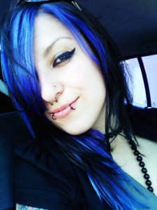 Cabelo preto com mecha azul